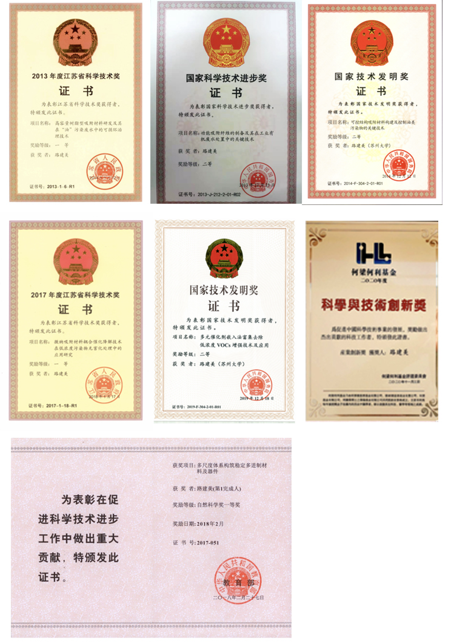 江苏省科学技术一等奖2项(2013,2017)